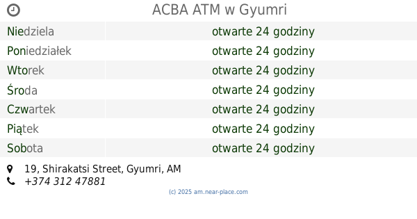 | Czwartek | otwarte 24 godziny | |||||